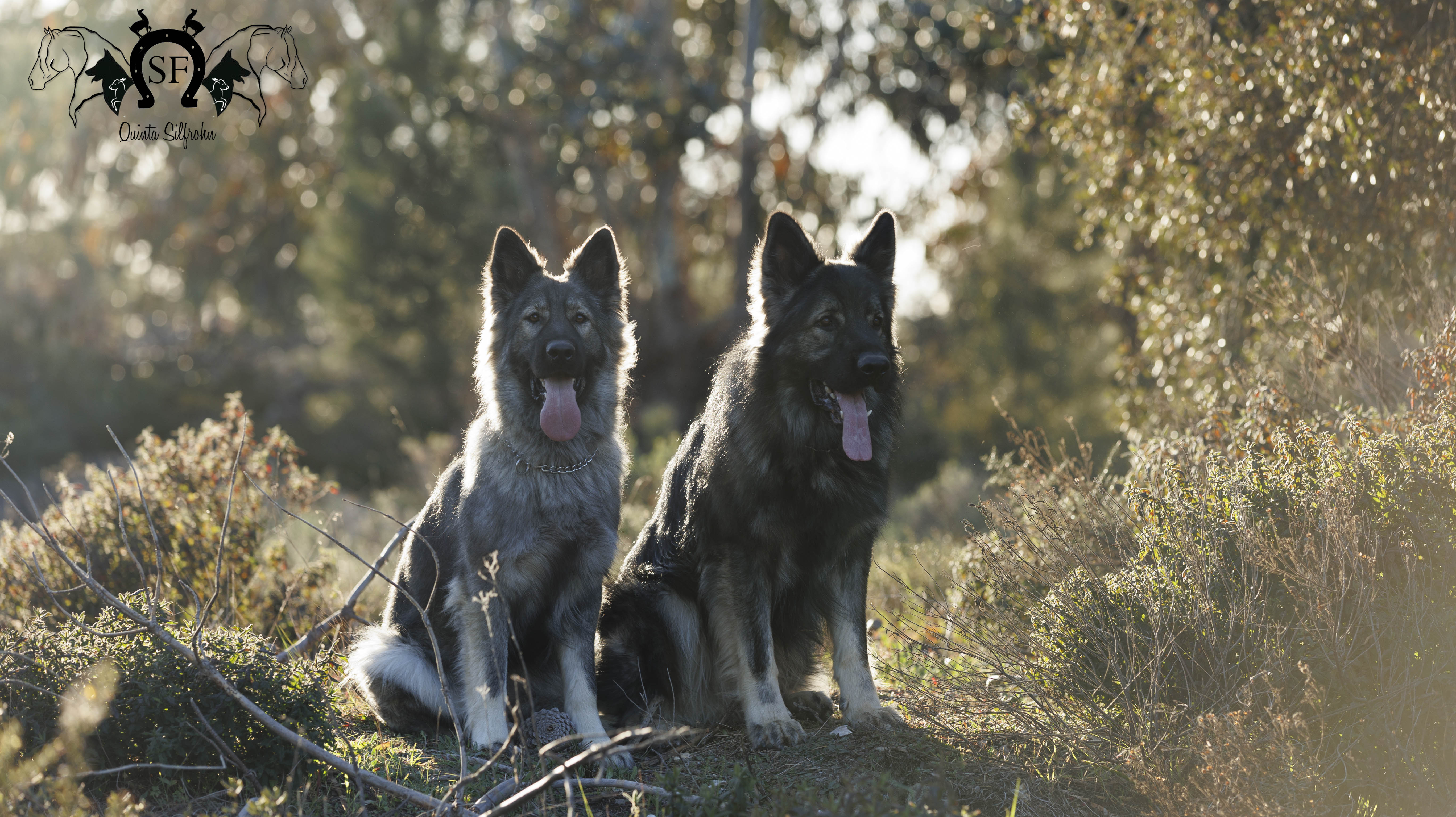 Em 2025 iremos realizar a cruza da Ezra e do Ner'Zhul. O Ner'Zhul é um cão Lobeiro prateado muito robusto com uma cabeça